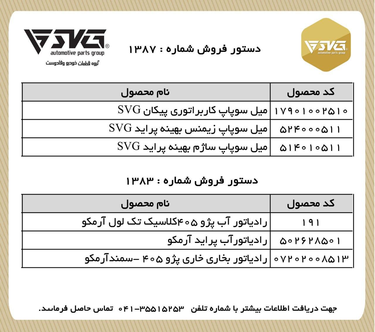 مشتریان محترم کالاهای فوق #آماده_فروش می باشد دستور فروش شماره : 1387-1383