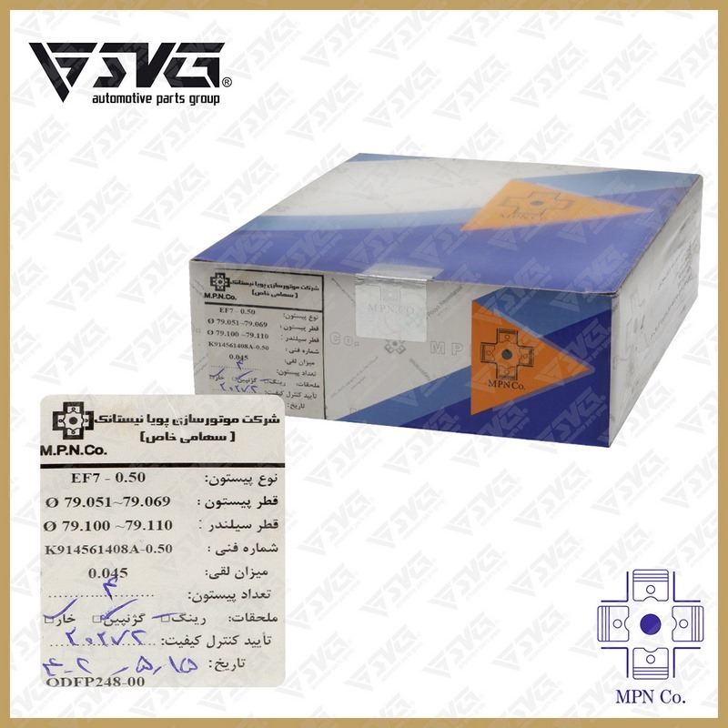 پیستون 0.50 سمند EF7 بدون رینگ برند MPN, سایز تعمیر دوم بوده و برای بازسازی موتور ملی EF7 پس از تراشکاری عمیق سیلندرها استفاده میشود.