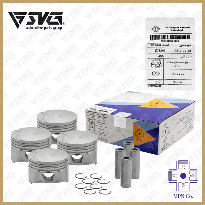 پیستون استاندارد STD سمند EF7 بدون رینگ برند MPN, با ابعاد فابریک و بدون نیاز به تراشکاری سیلندر, برای بازسازی موتور ملی EF7 مناسب است.